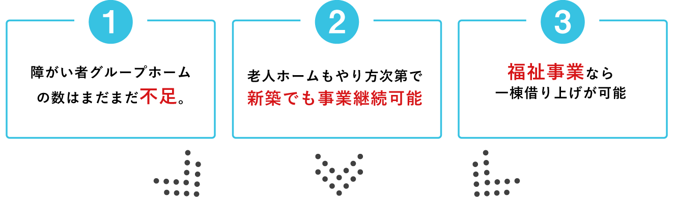 HOTAKAでは福祉施設による土地活用の実績を活かし よりリスクを少なくした土地活用のご提案をいたします。